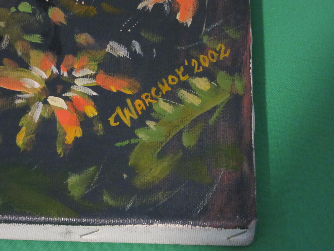 Artystyczny obraz przedstawiający nagą postać kobiecą w otoczeniu roślinności , obraz jest podpisany Warchoł 2002 , Odb Osobisty Boguchwaładodatkowo dodaję drewnianą ramę , gruba Ale do renowacji